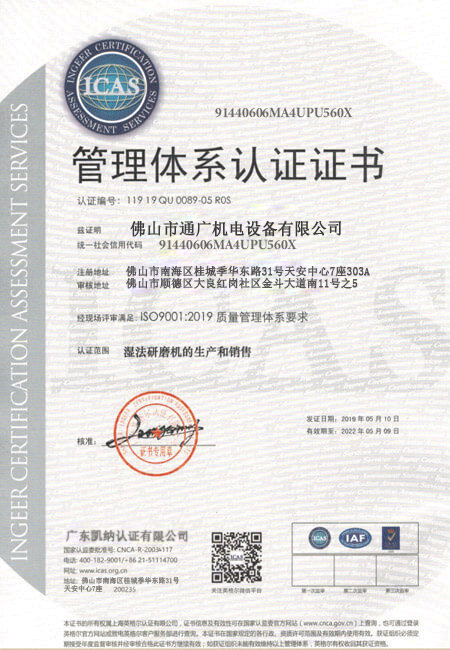 • + 2019.4.8 通廣機械通過ISO9001質(zhì)量管理體系認證,CE認證,重合同守信用等各項認證及榮譽。